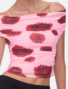 The Luca Mesh Off-Shoulder Top is a modern statement piece, adorned with a bespoke floral print and crafted from soft mesh. The overlaying fabric at the off-shoulder neckline, paired with ruching throughout the body, creates a flattering, figure-hugging silhouette. Featuring an asymmetrical hem and lined with soft jersey, it offers effortless movement and all-day comfort, combining practicality with elegance.