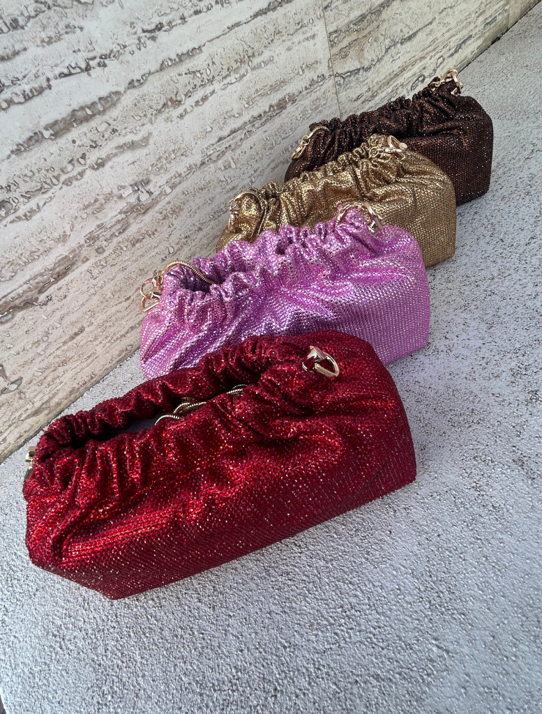 Designed with versatility in mind, it comes with a sleek crossbody chain strap for hands-free wear, while the soft ruched detailing gives it a chic, modern edge. Spacious enough to hold your phone, keys, and lipstick, this bag is perfect for weddings, cocktail parties, balls, and race day events.