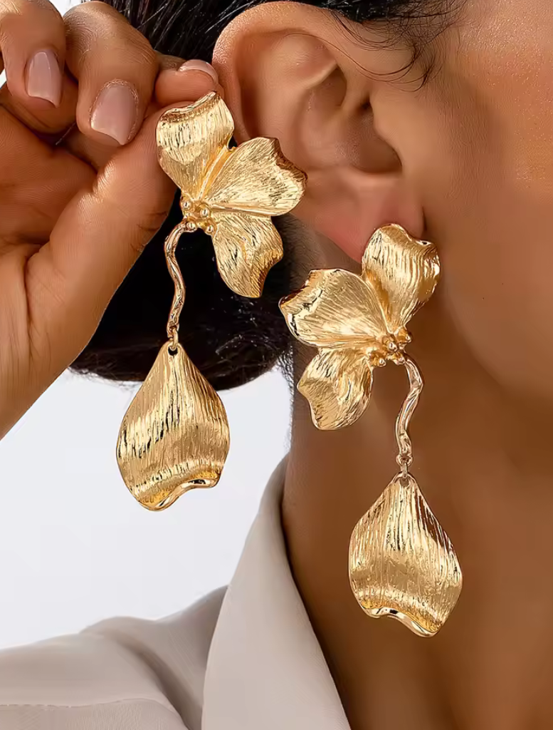 Elevate your accessory collection with the Tara Flower Earrings. Expertly crafted, these earrings feature delicate petal designs that gracefully sway, adding a refined touch to any outfit. Their lightweight construction ensures comfortable wear throughout the day, making them ideal for both casual and formal occasions. Perfect for those who appreciate subtle elegance and floral-inspired artistry. The durable and comfortable earrings show the smooth surface that is laying flat on you for an elegant look.