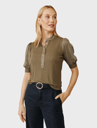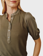 Short Sleeve Placket Mixed Shirt- Ivy Green