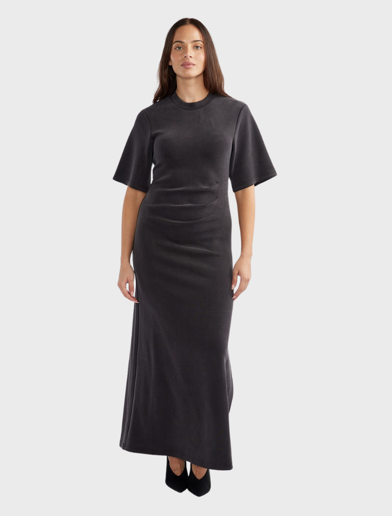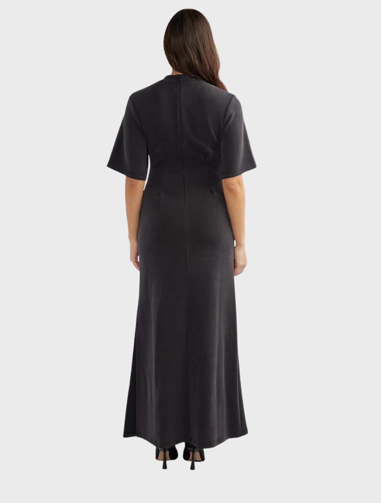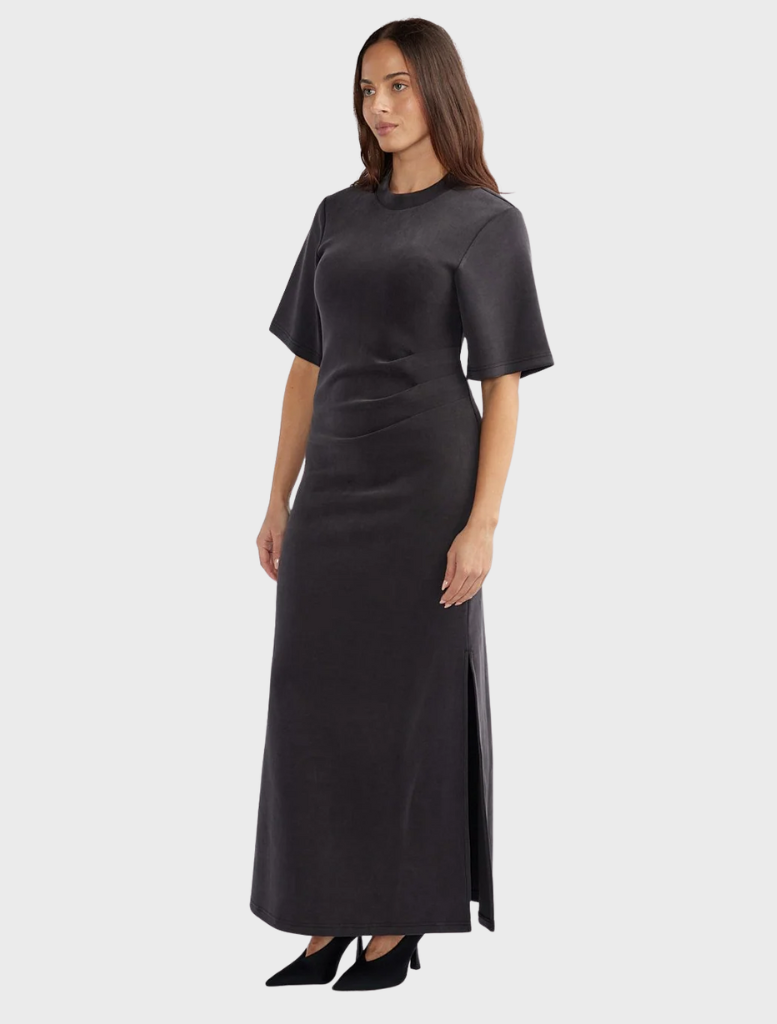 The Zia Maxi Dress is crafted from lightweight AirLayer fabric, combining comfort with sleek design. Featuring a fitted silhouette with back darts and side hem split, it is precision-tailored to accentuate your form while offering effortless movement. A bold statement piece for those who value understated elegance.