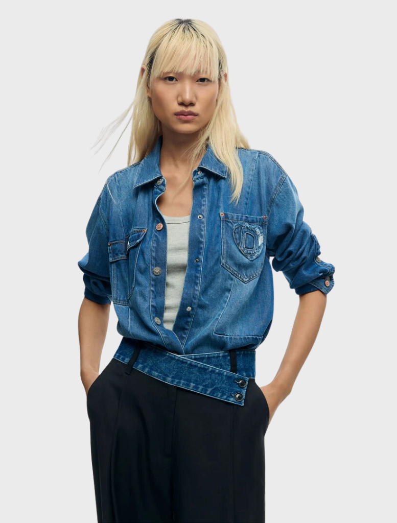 - Asymmetric denim waistband