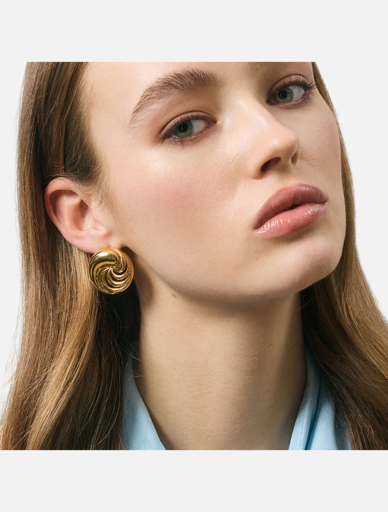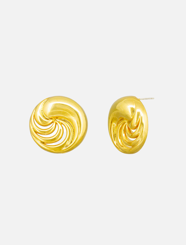 Introducing the Anna Earrings: a modern statement piece featuring a beautiful swirl design. These circle statement earrings are sure to make a statement and elevate any outfit. Bring a touch of elegance and style to your everyday look with these stunning earrings.