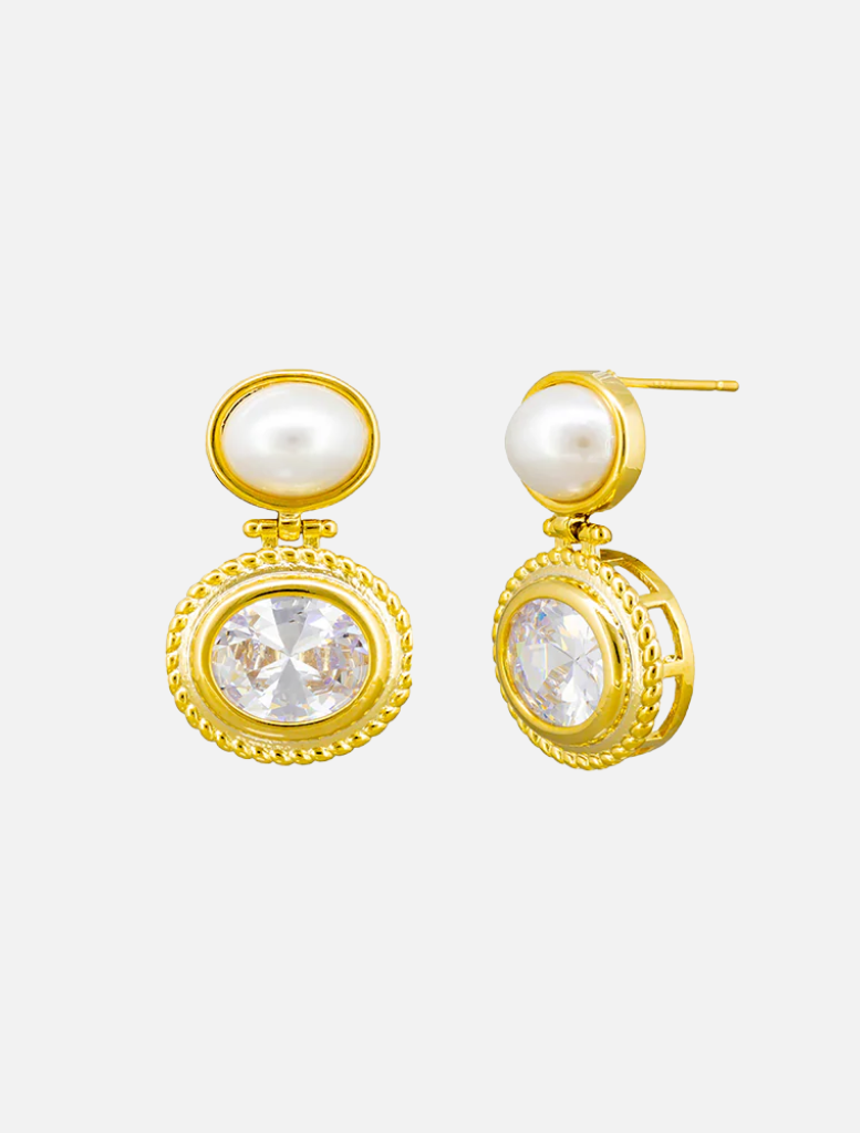 Add a touch of elegance to any formal outfit with our Roux Earrings. Featuring a classic pearl stud and a large, sparkling crystal, these earrings are the perfect accessory for any special occasion. Elevate your style with these sophisticated earrings.