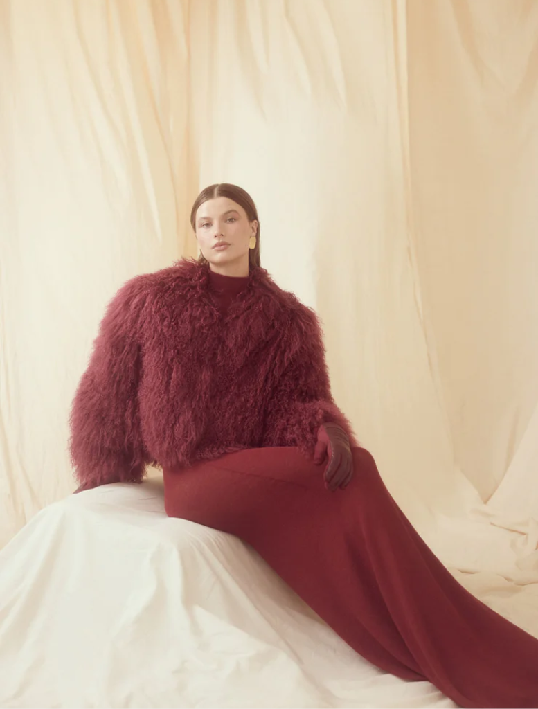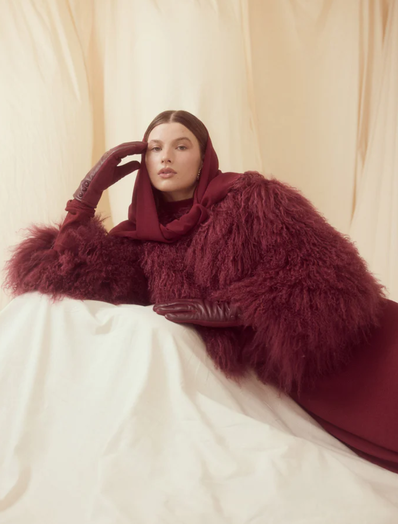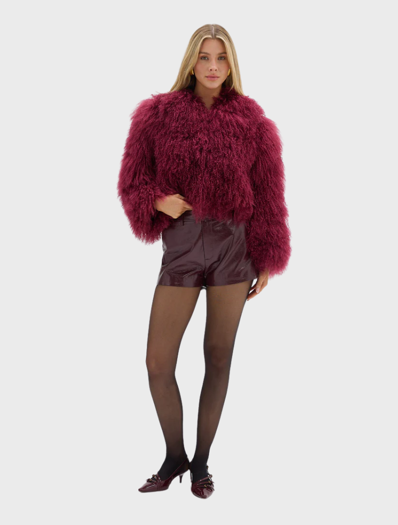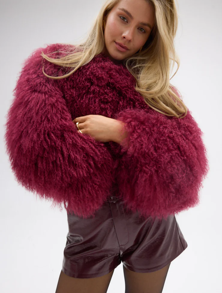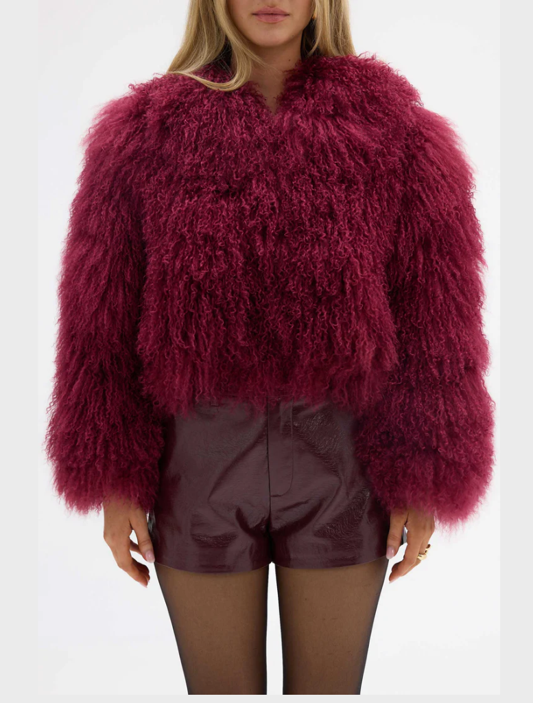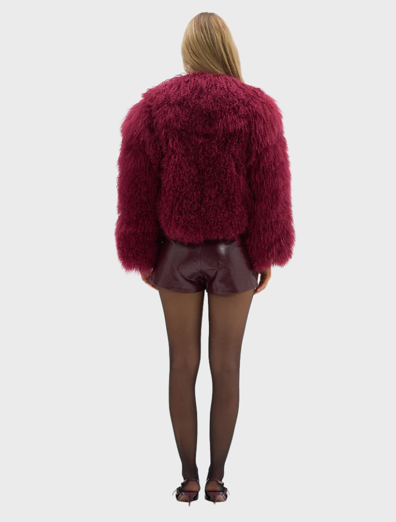 The undeniably cool Georgina jacket is the statement your wardrobe is missing. Reimagined in a Cherry hue, the Georgina Jacket is constructed using 100% Mongolian lamb fur and finished with discreet concealed fastenings.