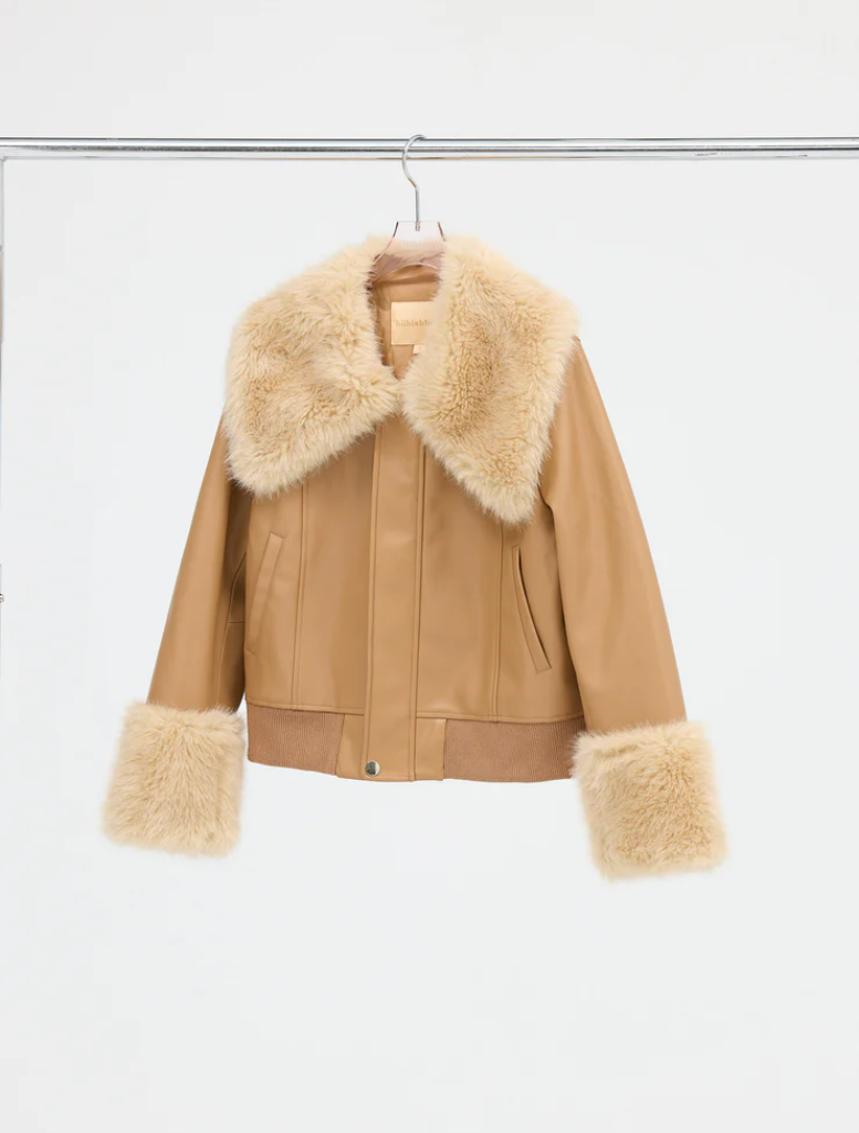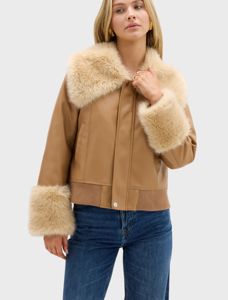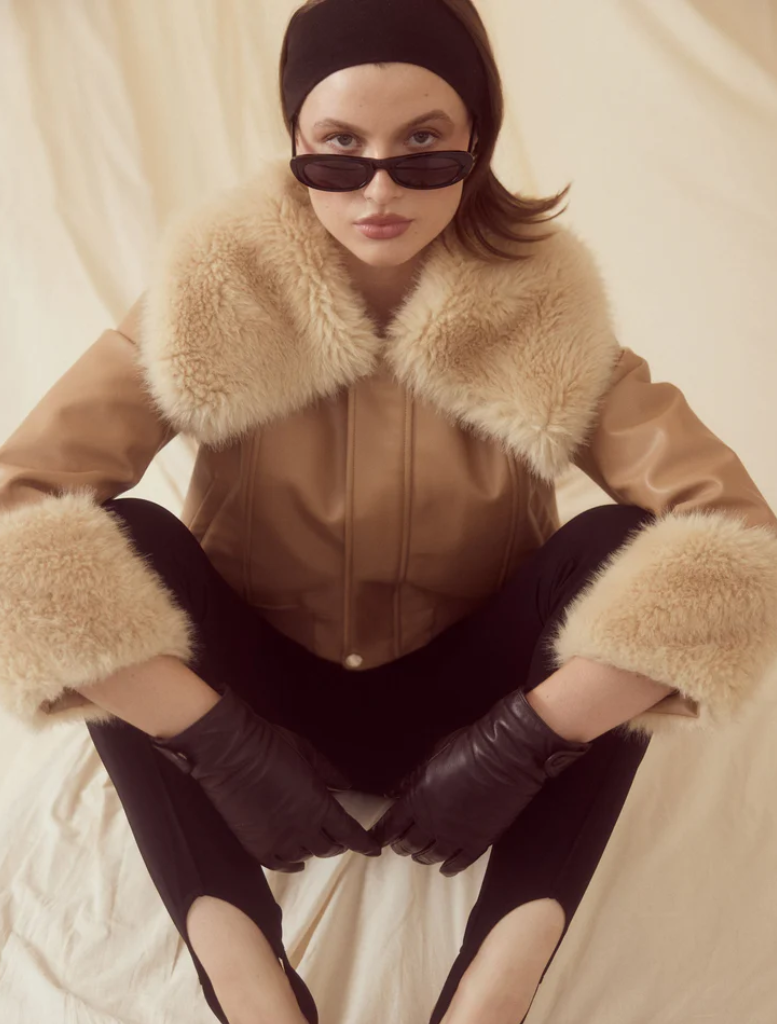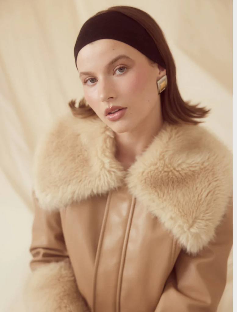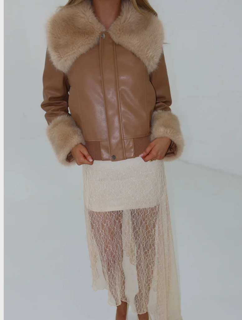 Elevate your outerwear collection with the Willow Jacket, a timeless staple you’ll reach for season after season. Designed in a rich walnut hue, this down jacket features a soft, leather-look finish with plush shearling accents and a premium down filling for warmth all season long. Featuring an oversized collar, statement cuffs, and relaxed fit, the Willow Jacket is made for layering—whether you’re throwing it over denim for a casual day out or pairing it with tailored pieces for a more polished look.