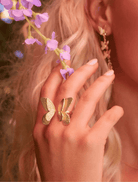 This 14k plated ring is available in two sizes: S-M and M-L. The gold variant features Emma Pills' signature fearless finish, while the silver option is crafted from shiny recycled silver. Additionally, it comes in a one-size-fits-most (OSFM) design.