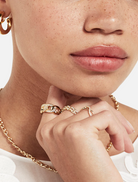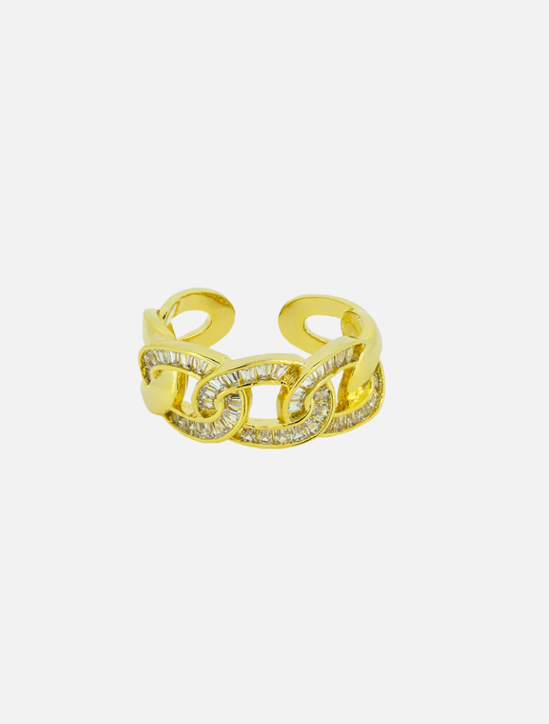 A bold and crystal focussed design, the Eliza Ring is the statement ring you need in your collection to elevate your night out or special occasion looks. This piece has a twisted, overlapping chain design, with strong gold accenting the embedded crystals.