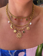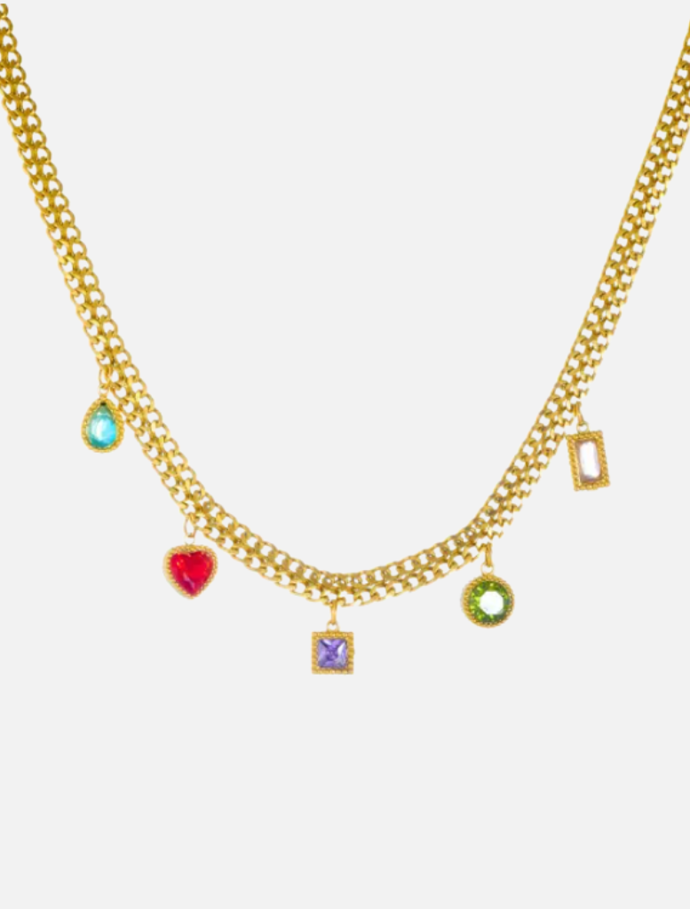 Here to steal the spotlight, Raquel is the statement piece your stack has been waiting for. Adorned with a mix of dazzling colourful stones, this necklace brings the perfect pop of allure to any look.