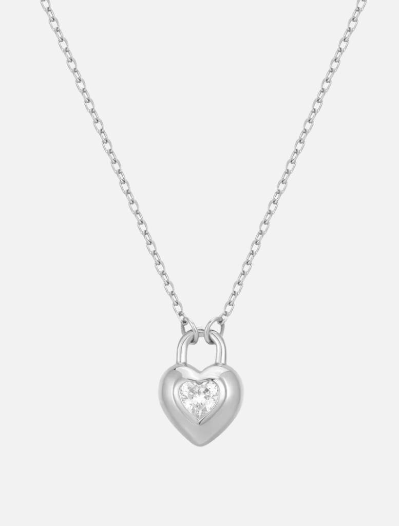 The Yvonne Necklace features an intricately linked silver chain with a hanging heart-shaped pendant centred with a heart-shaped cubic zirconia crystal. This necklace mimics a locket style, and is perfect as an everyday necklace.