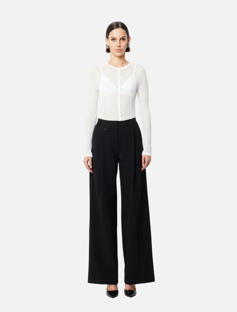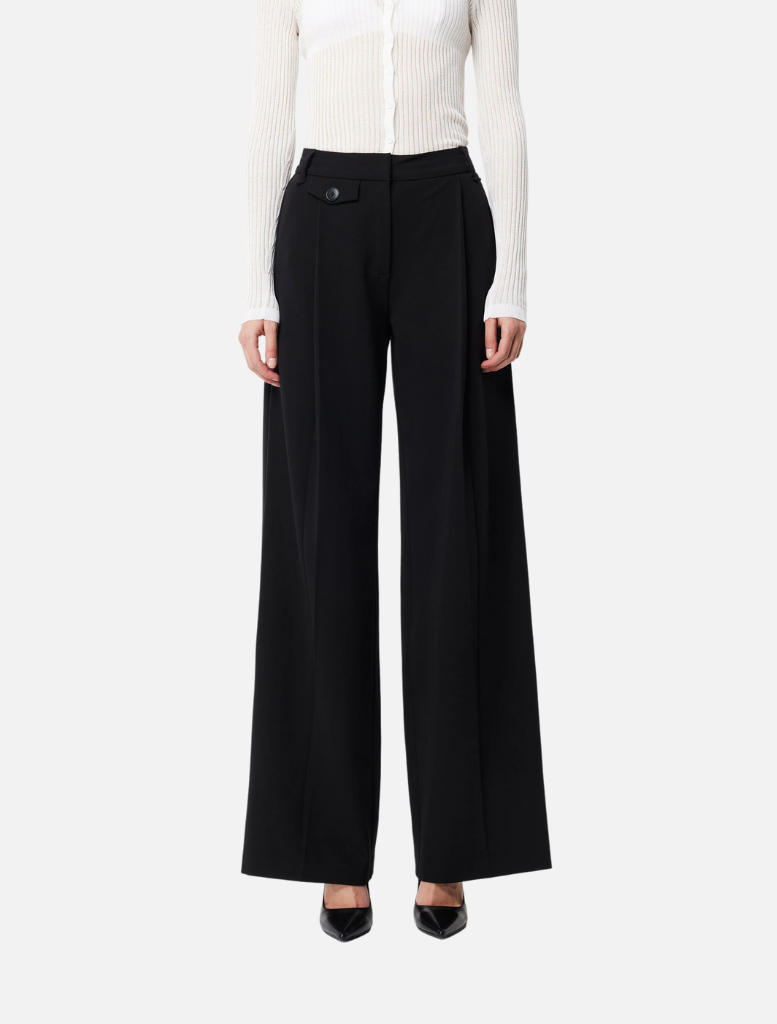 A wardrobe staple, the Boston Wide-Leg Pants in black are crafted from a soft suiting fabric for a refined and comfortable fit. Featuring coin pocket detailing at the waist and single front pleats, these pants offer a flattering wide-leg silhouette. Pair with the Boston Blazer for a polished office look, or style with a soft knit for a more relaxed mood.
