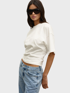 The Lex T-Shirt brings a modern edge to a classic wardrobe staple. Designed with a relaxed silhouette, dropped shoulders, and a slightly cropped length, it’s crafted from a soft cotton jersey for ultimate comfort and ease. Perfectly balancing structure and drape, this piece elevates casual dressing with minimal effort.