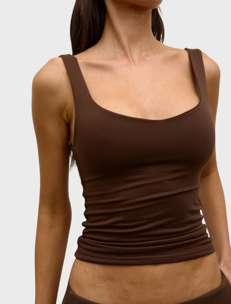 The Ray Top is a sleek essential designed with a flattering scoop neckline and a form-fitting silhouette. Crafted from a soft, stretch fabrication, it offers both comfort and structure — perfect for effortless layering or elevated everyday wear.