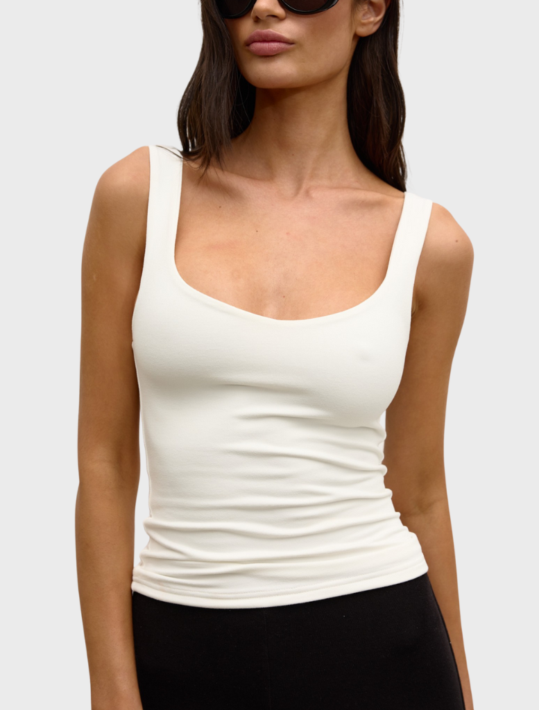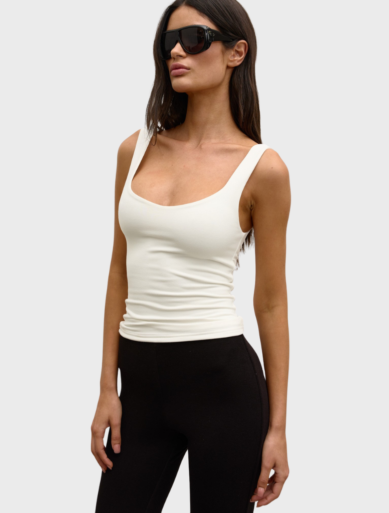 The Ray Top is a sleek essential designed with a flattering scoop neckline and a form-fitting silhouette. Crafted from a soft, stretch fabrication, it offers both comfort and structure — perfect for effortless layering or elevated everyday wear.
