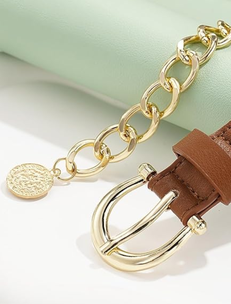 Stylish and versatile: The slim design and gold buckle of this chain belt add a touch of elegance, perfect for wearing women's dresses, sweaters, blouses, etc., suitable for some casual or formal occasions.