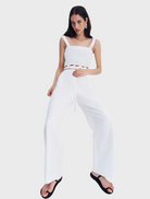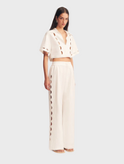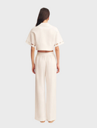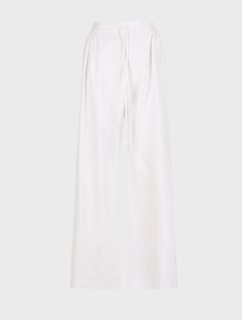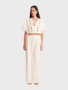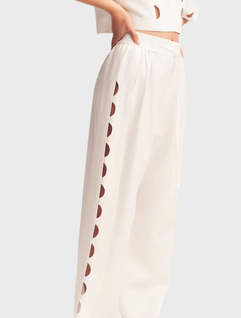 Elasticated pants with scallop cut-out detail in ivory in a premium linen blend.