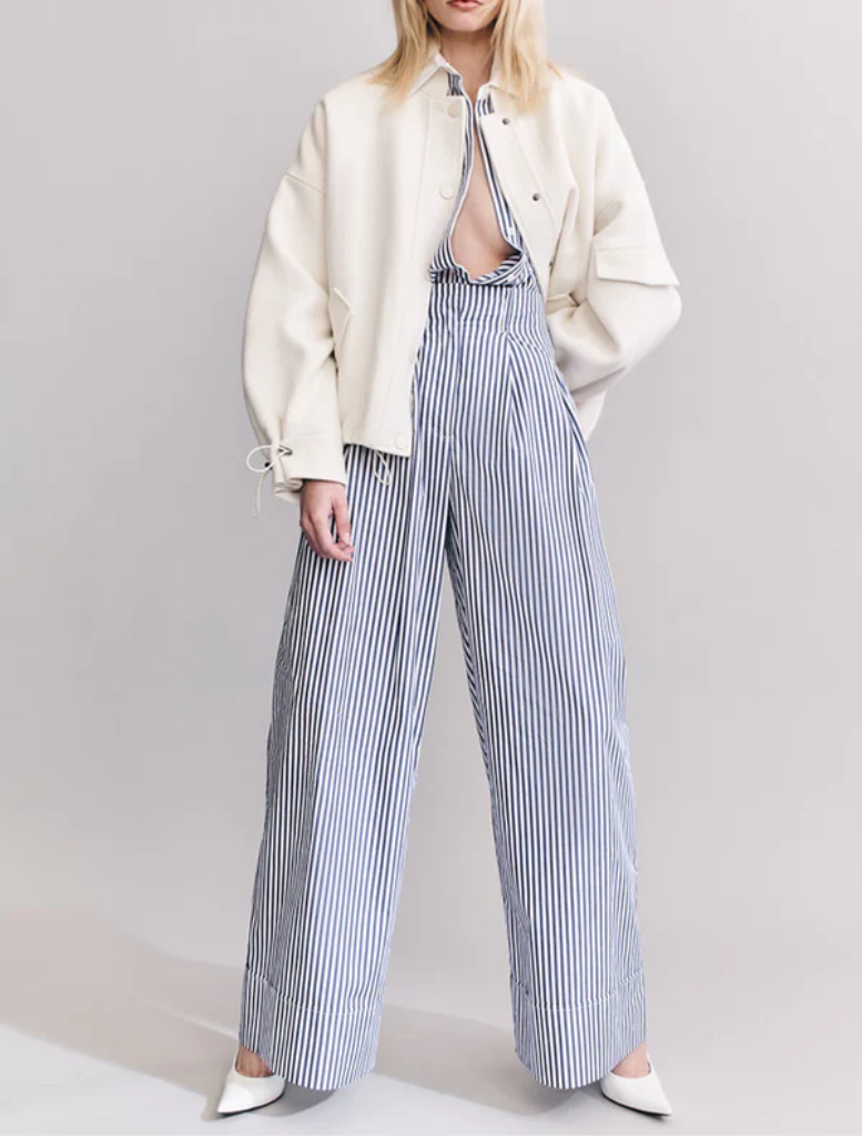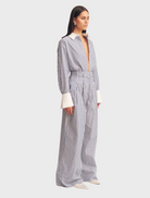 High-waisted relaxed pants in a Nautical Stripe cotton shirting.