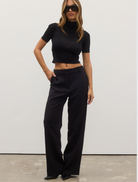 Introducing our Martine pant, designed with a sleek, mid-waisted silhouette, these versatile black trousers feature a flattering straight-leg fit that elongates the legs and exudes sophistication. Crafted from premium fabric, they offer a structured yet comfortable feel, making them perfect for both workwear and casual styling.
