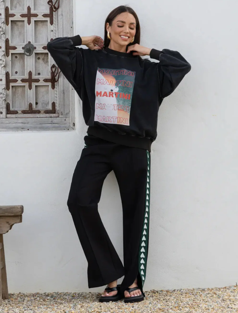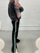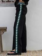 Our newest comfy track pant in black with the spade logo in green and white down the sides. A versatile style to add to your winter wardrobe, it's the perfect comfy casual street style that pairs seamlessly with a tee/jumper and your fav sneakers.
