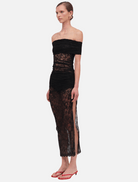 Sleek, structured, and quietly striking. The Beau Lace Off-Shoulder Midi Dress plays with contrast—sharp lines softened by intricate lace. Designed with a sculpted bodice and an effortless drape, it moves with you, offering fluidity and structure in equal measure. The off-shoulder neckline adds an element of restraint, while sheer lace panelling brings depth and detail.