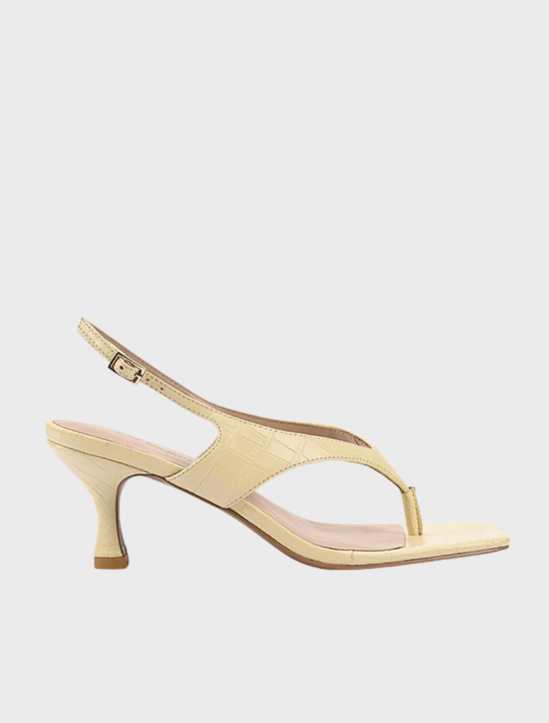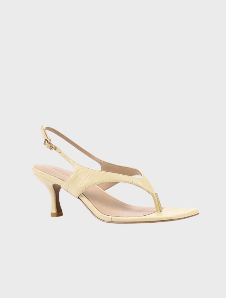 Christina blends casual charm with modern elegance. Now in a soft butter yellow leather, this slingback thong sandal brings a fresh, uplifting touch to your warm-weather wardrobe. Set on a comfortable short block heel, it’s the perfect choice for relaxed days that still call for a polished finish.