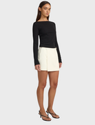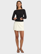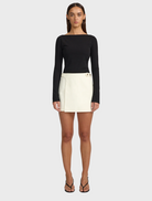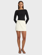 The Joan Skirt is a wrap-style mini skirt made from a structured cotton fabrication. The skirt has a belted style waistband with Ownley-branded metal buttons. Pair with the Tobias Jacket for a tonal set.