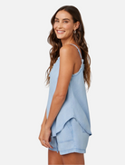Our frayed cami is a perfect, everyday, versatile top. It features adjustable straps, a frayed neckline, and a relaxed fit. It is an essential and perfect layering piece. Pair it with jeans tucked in or untucked for a more effortless look.
