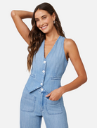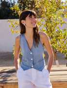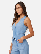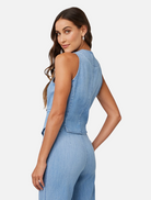 Our Wren Cinch Back Vest is on trend and even better in a denim wash, pair it with our Lola Two Pocket Wide Leg trousers for a denim-on denim look and step out in style.