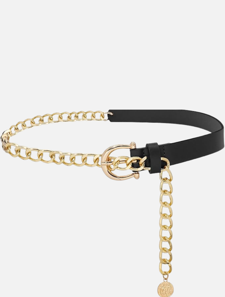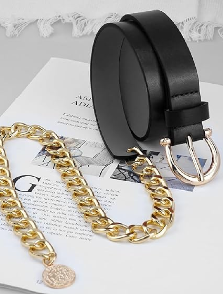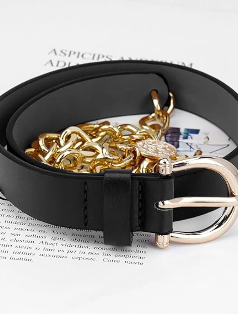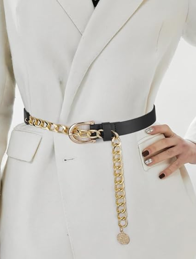 Stylish and versatile: The slim design and gold buckle of this chain belt add a touch of elegance, perfect for wearing women's dresses, sweaters, blouses, etc., suitable for some casual or formal occasions.