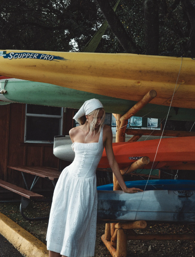 The Dreamy Daisy Midi Dress is what summer dreams are made of. Crafted in 100% cotton, this white eyelet dress spotlights a gathered bust panel, drop waist, and ultra-feminine gathered skirt with pockets at the side seams.