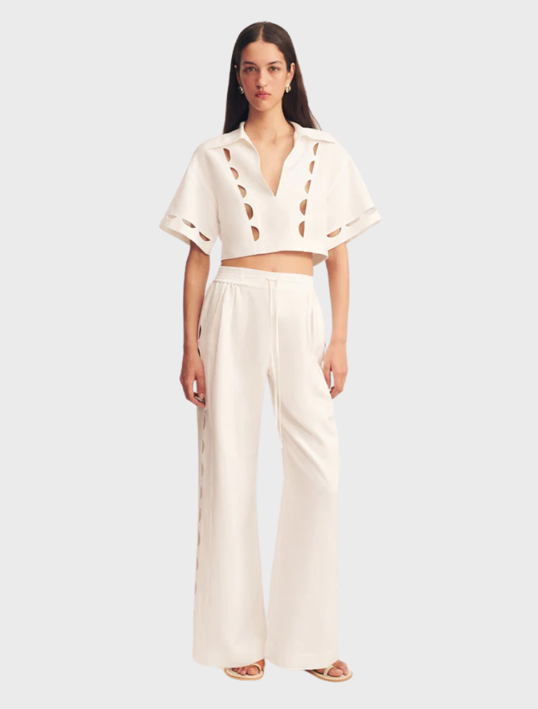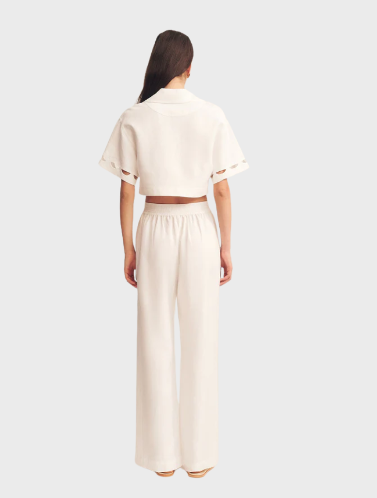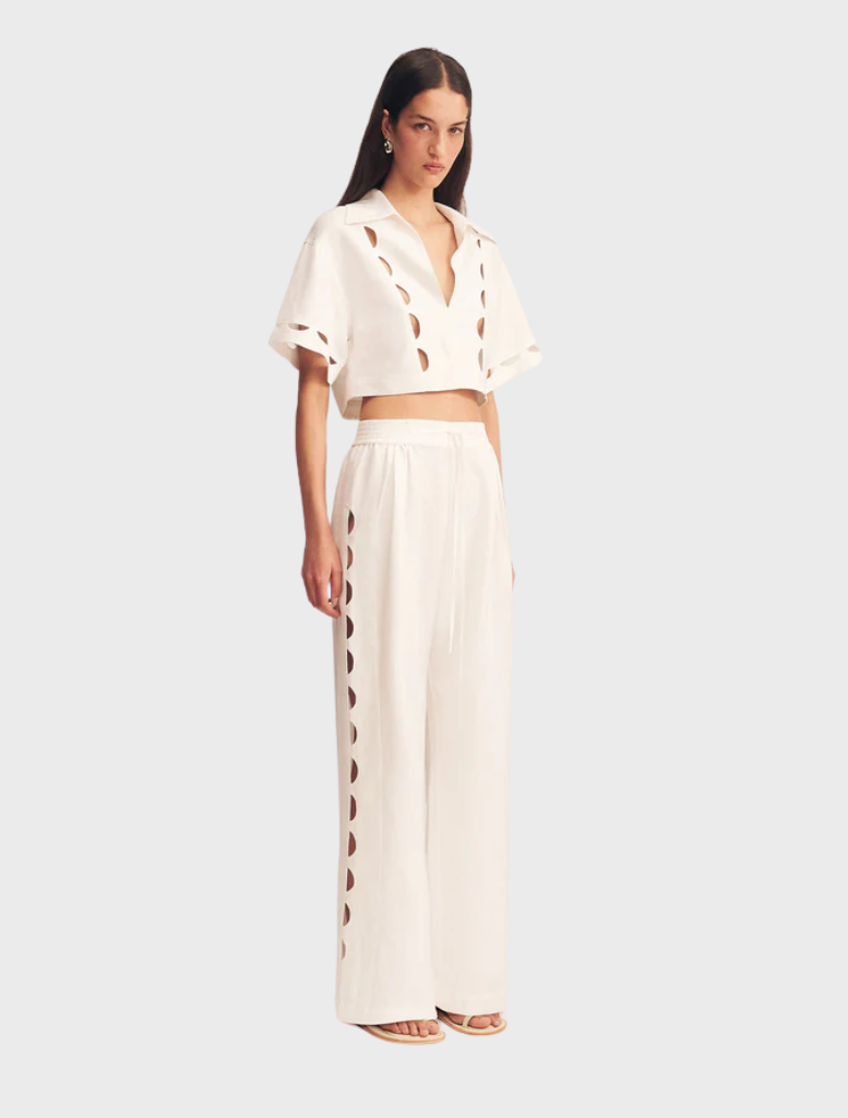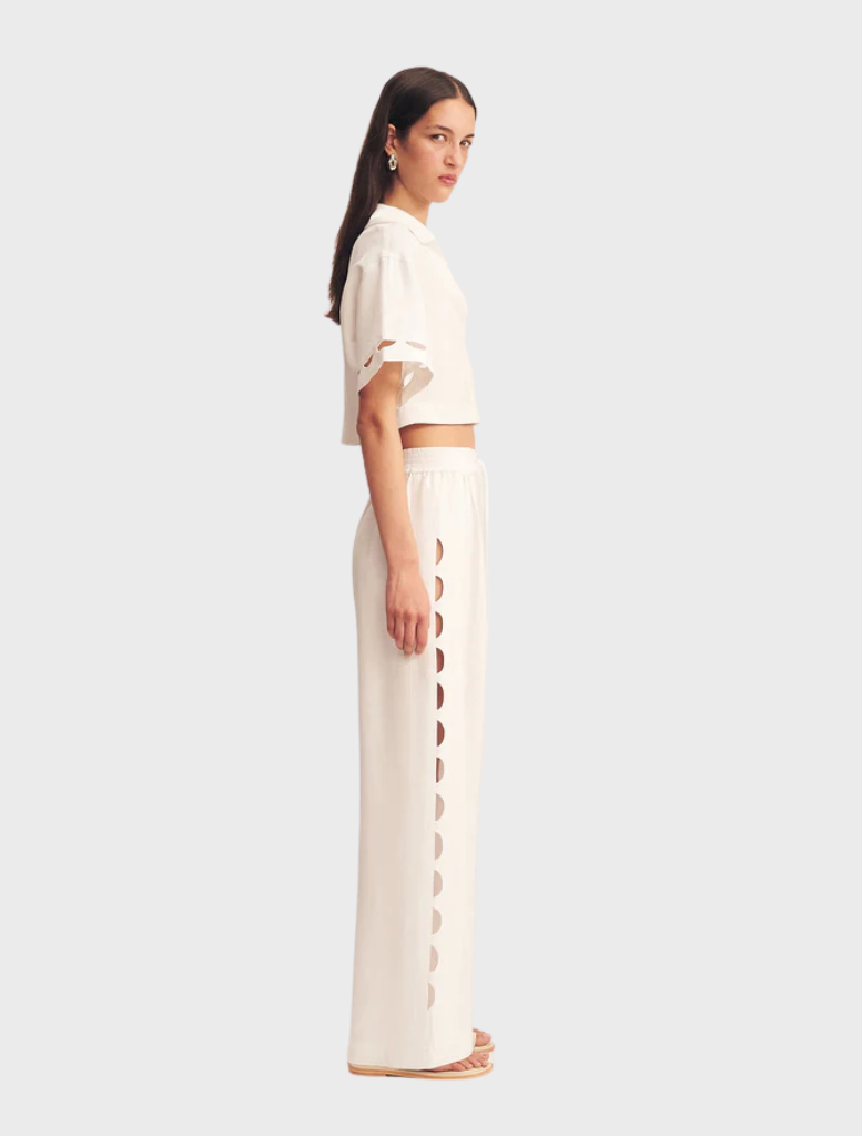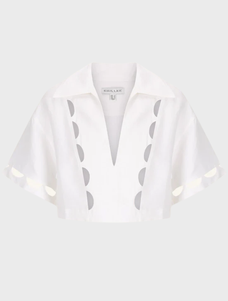 Cropped shirt with scallop cut-out detail in ivory in a premium linen blend.