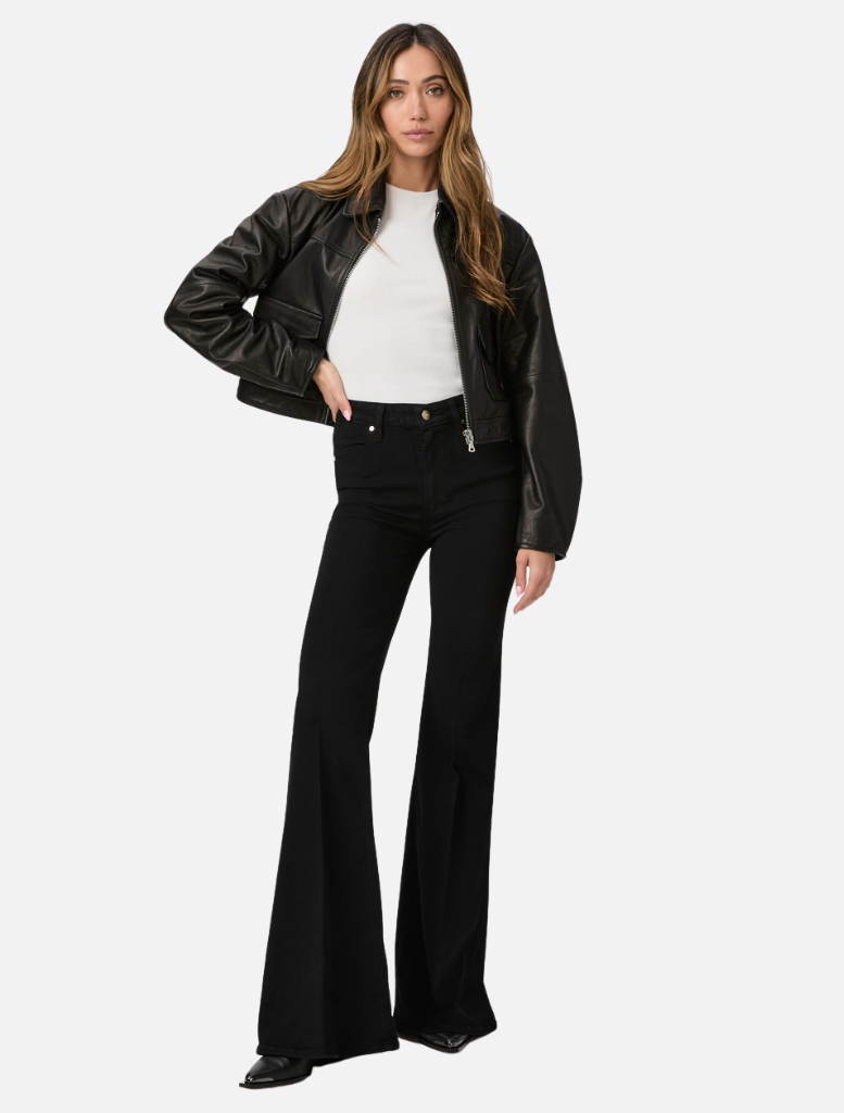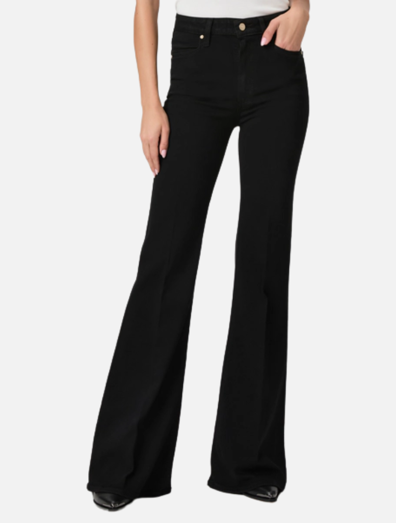 Charlie is our largest flared silhouette with the highest rise. Cut from TRANSCEND denim in our best-selling black shadow wash with an angled waistband, and angled front pockets, this style is luxuriously soft with plenty of stretch and recovery to give it a flawless fit from morning to moonlight.