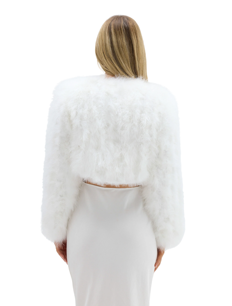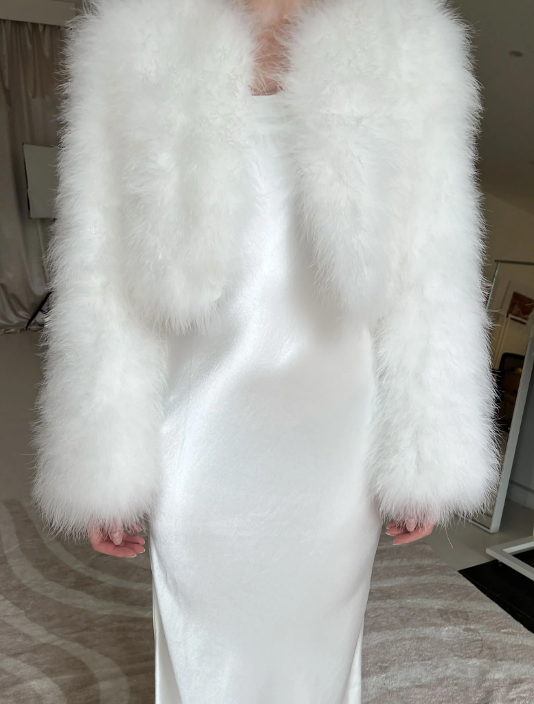 The perfect blend of strong shoulder structure and flattering feminine cropped length, the Marabou feather jacket oozes sophistication and style. Perfect for a chilly winter’s evening, the Manhattan can be dressed up or down no matter the occasion.