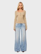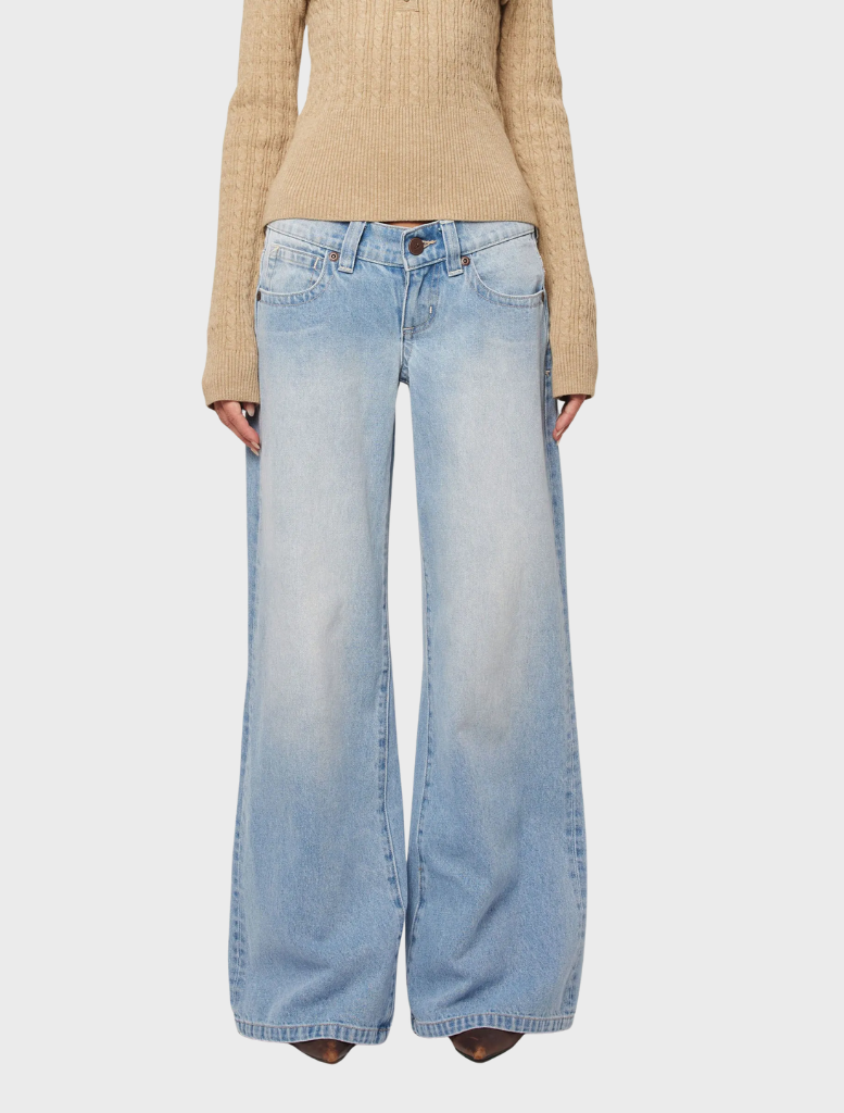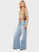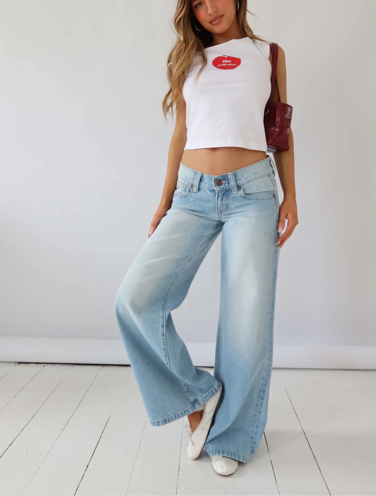 Made to turn heads. Designed with a super low-rise waist that sits right on your hips, these jeans hug your butt and thighs before flaring from hip to hem for that full-leg moment. Cut lower at the front with added coverage at the back, the mid-weight indigo denim softens and moulds to your body with every wear. Pop on a baby tee and pointed heels, or balance the flare with a cropped knit and a mini tote